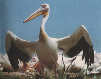 птиц весят примерно 10 кг. Розовый пеликан прочно удерживает третье