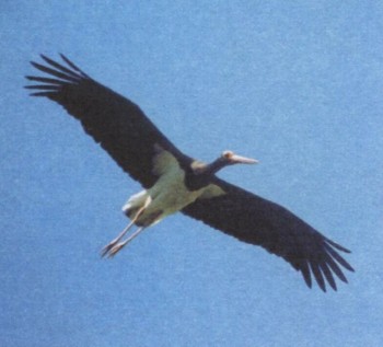 безлюдным участкам речных долин. Черный аист очень похож на белого аиста