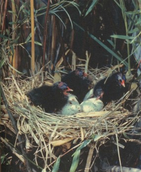 птицы.У султанок несколько пар вместе с потомством объединяются в