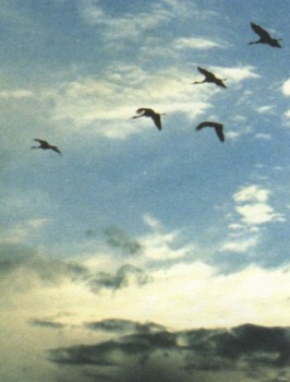 Супружеские пары серых журавлей не распадаются много лет. В стаях