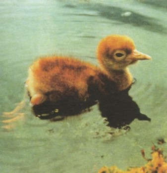Птенцы серого журавля вылупляются зрячими, покрытыми густым желтым