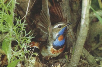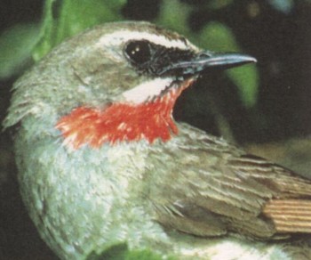 Самцы варакушки окрашены очень пестро. В зависимости от цвета