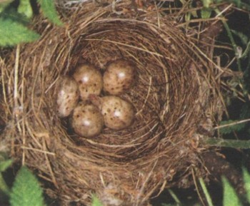 Гнездо певчей славки представляет собой довольно рыхлое чашевидное