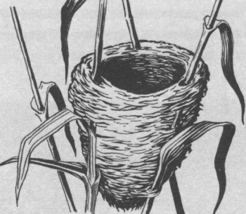 Гнездо тростниковой камышовки напоминает конус с усеченной