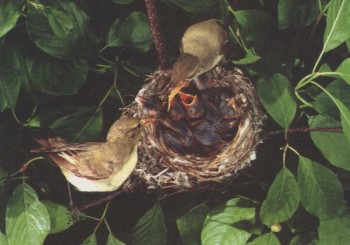 с пухом ивы, осины. Снаружи гнездо оплетается паутиной и узкими полосками