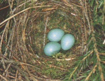 скалистых обнажений. В полной кладке у этой птицы 5-6 яиц ярко-голубого