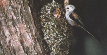 Длиннохвостые синицы свивают гнездо в виде замкнутой эллипсовидной