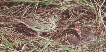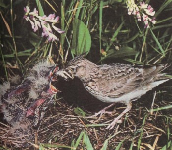 Первые кладки полевых жаворонков появляются уже в конце апреля.