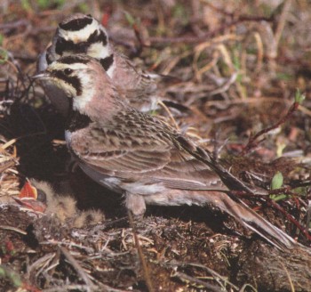 При постройке гнезда на склоне рогатые жаворонки не только