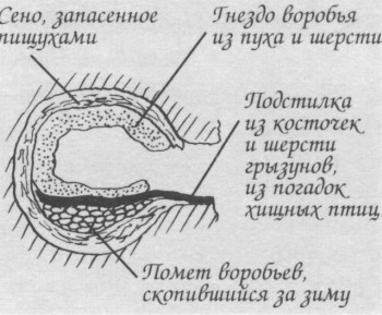 пищухами сена, в толще которого и находится гнездо.