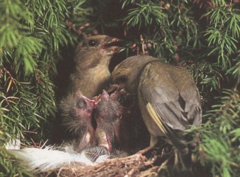 лесными канарейками. Зеленушки поселяются на лесных опушках неподалеку