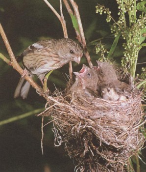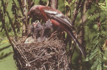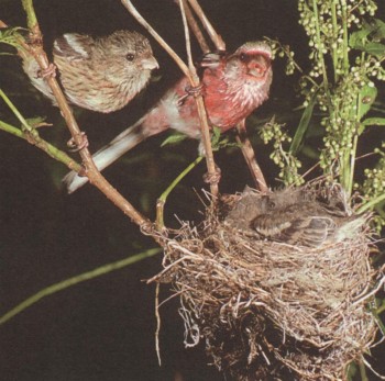 Длиннохвостые снегири у гнезда