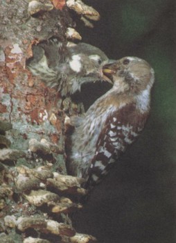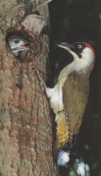 Самки седого и зеленого дятлов выдалбливают дупла самостоятельно.