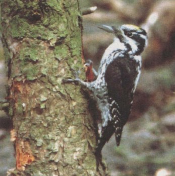 Трехпалые дятлы кормятся насекомыми, обитающими под корой